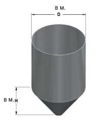 ВСМ. = 0,261 X ДИАМ.² (D) X ВЫСОТА (H) X ПЛОТНОСТЬ МАТЕРИАЛА В КГ/М³
