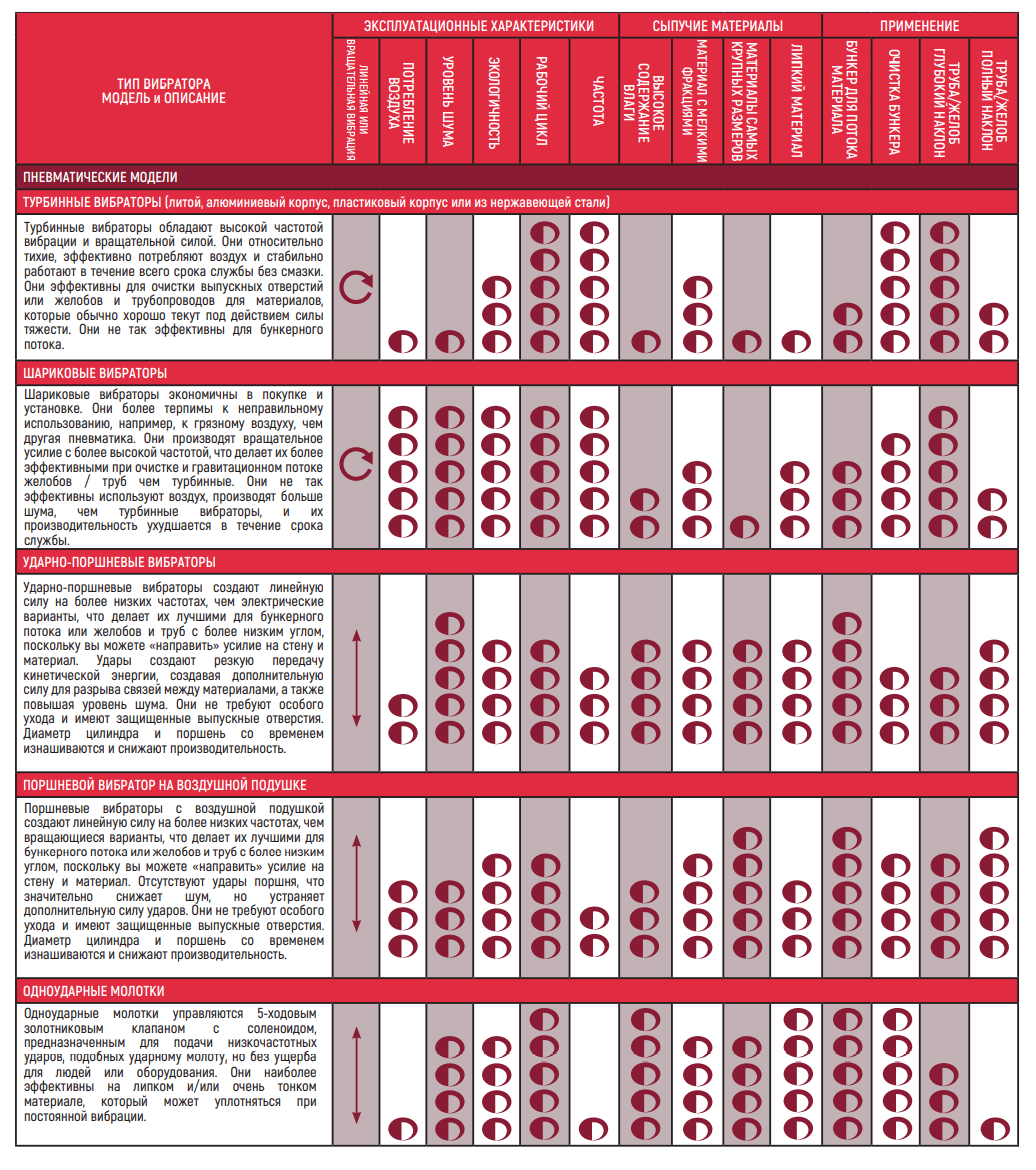 Теперь, когда вы нашли количество вибраторов и силу, необходимую для вашего приложения, вы обнаружите, что существует несколько вариантов вибраторов, которые лучше всего соответствуют вашим потребностям. На этом последнем шаге вы сделаете наилучший выбор, исходя из требований к источнику питания, шума и экологических проблем, свойств материала и области применения. На страницах 5 и 6 каждая модель вибратора описывается очень подробно, ранжируются сильные стороны множества различных моделей и типов вибраторов, предлагаемых Довой Технос Рус, чтобы помочь вам принять наилучшее решение, которое поможет выполнить работу.