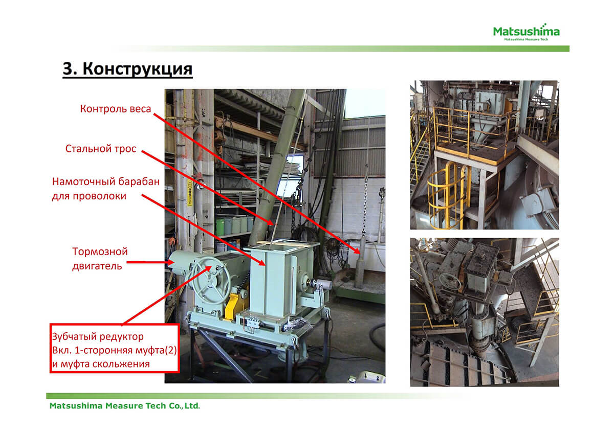 Механический уровнемер для измерения уровня засыпи в доменной печи. Никакой сложной регулировки контр-крутящего момента! Уникальная конструкция муфты скольжения и система регулирования контр-крутящего момента обеспечивают простой, но точный механизм контроля уровня засыпи.