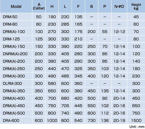 - Тип фланца: RM (круглый) и RA (прямоугольный)