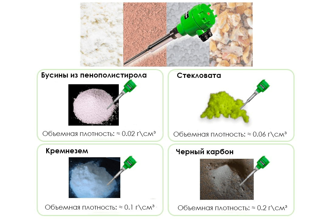 Поскольку на переключатель уровня вибрации не влияют электрические свойства материала, его можно применять для материалов с низкой диэлектрической проницаемостью.