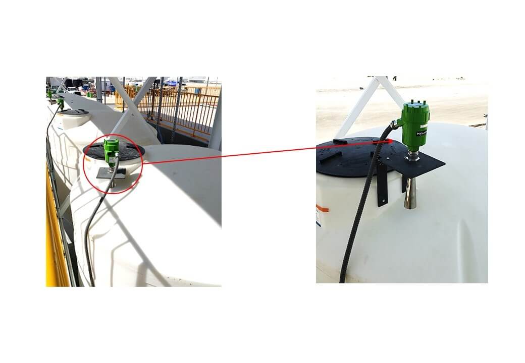 Радарный уровнемер может контролировать уровень коррозионного химического вещества через полипропиленовый бак при внешней установке.
