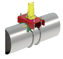 Устройство оснащено монтажным каналом и U-образными болтами и является подвижным вариантом для применения на трубах.