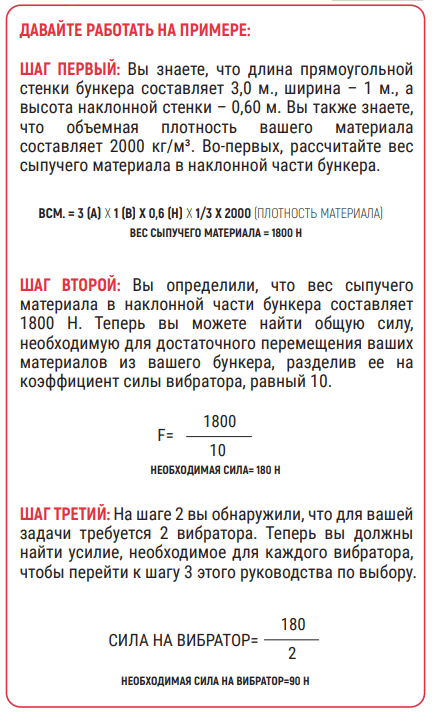 * Если для вашей задачи рекомендуется более одного вибратора, разделите решение приведенного выше уравнения на количество вибраторов, необходимое для определения требуемой силы на каждый вибратор.