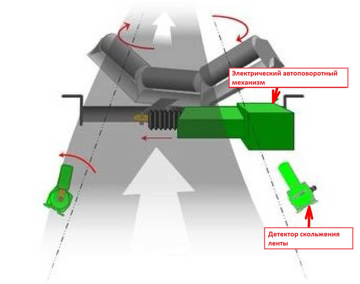 Предназначен для предупреждения и предотвращения бокового схода конвейерной ленты с роликоопор. Несколько датчиков, установленных по обе стороны конвейера, позволяют контролировать смещение ленты влево или вправо.