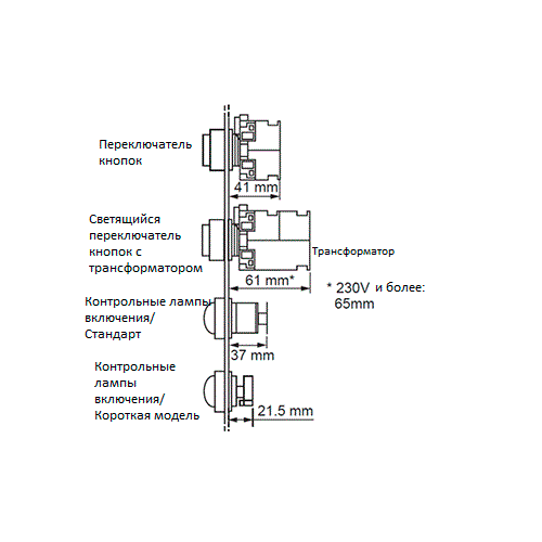 - Возможен монтаж на панель, при этом кнопка / ручка необходимо установить на оператор.