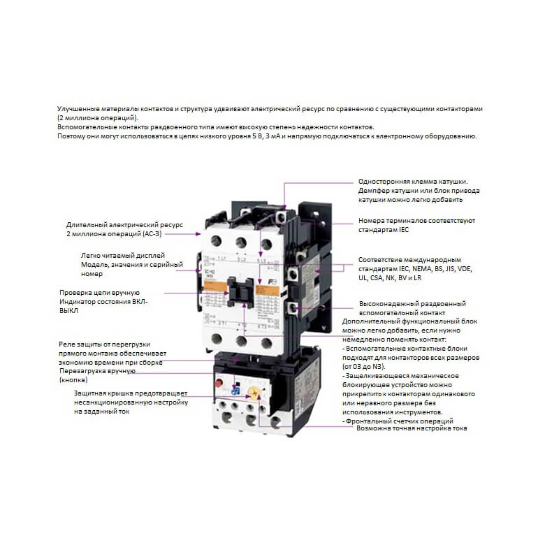 Серия SC – это серия долговечных и высокопроизводительных контакторов. Модельный ряд от SC-03 до SC-N3 с малым каркасом обеспечивают возможность защелкивания многочисленных дополнительных блоков, таких как блоки вспомогательных контактов, ограничители перенапряжений катушек и счетчики числа срабатываний. Модернизацию на месте эксплуатации можно сделать быстро и легко. Модельный ряд, начиная с SC-N6 и выше поставляются с управляемой IC катушкой SUPER MAGNET, которая работает как от источников переменного, так и постоянного тока, чтобы избежать сгорания катушек и дребезжания контактов при колебаниях напряжения.